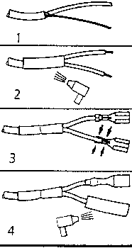 last 5mm of both wires.Crimp the 4.8mm plugs with a suitable tool or
